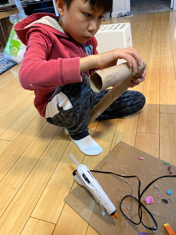 Attach paper towel rolls to each end of the bendy part with hot glue.