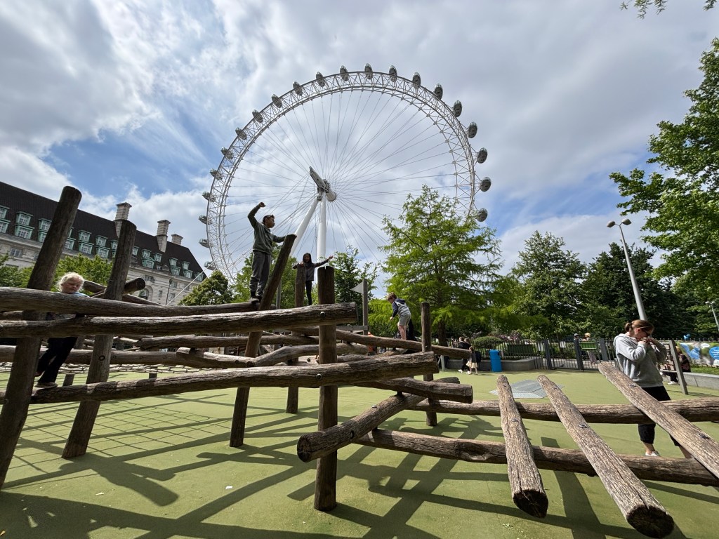 - Children’s Play Area at Jubilee Garden – Fun playground with epic view of London Eye. Great place to watch buskers perform. We walked here from the Graffiti tunnel.